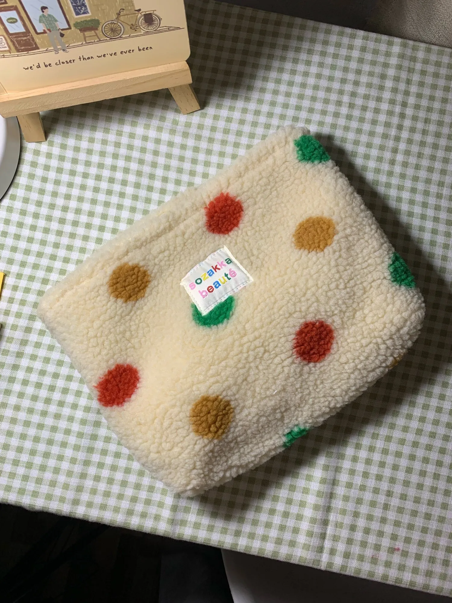 Upgrade your daily routine with the Trendy Striped Plush Cosmetic Storage Bag, combining style and functionality effortlessly.